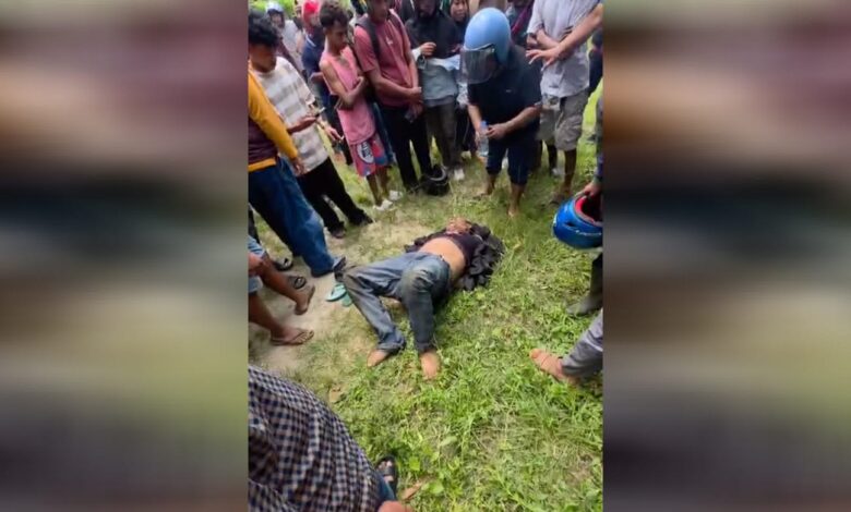 Warga yang geram dengan aksi pelaku langsung mengamankannya dan mengikat tangannya.