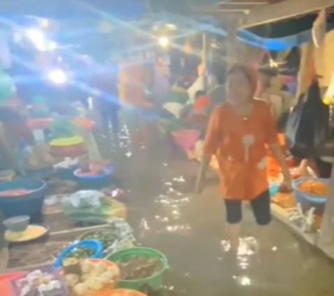 KENDARIKINI.COM – Beberapa hari kemarin wilayah Kota Kendari diguyur air hujan, sehingga menyebabkan air hujan masuk membanjiri Pasar Baruga Kota Kendari pada hari Kamis, 14 Oktober 2025 kemarin.