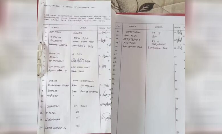 Berita acara ini diduga dibuat secara tertulis oleh Pemdes Punggulahi pada Senin 17 November 2025 yang ditandatangani sebanyak 25 orang.