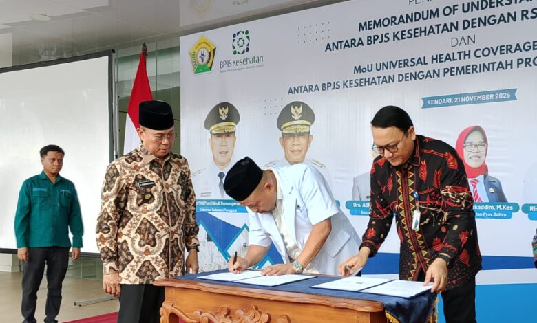 KENDARIKINI.COM – Gubernur Sulawesi Tenggara (Sultra) gelar acara pendatanganan memorandum of understanding (MoU) antara Badan Penyelenggara Jaminan Sosial (BPJS) Kesehatan Kendari dengan Rumah Sakit Jantung Pembuluh Darah dan Otak (RSJPDO) Oputa Yi Koo Kendari, Jum’at, 21 November 2025.