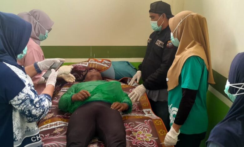 Jenazah awalnya dibawa ke Balai Desa sebelum akhirnya dibawa ke Puskesmas Roko-Roko untuk dilakukan pemeriksaan lebih lanjut oleh pihak medis serta kepolisian.