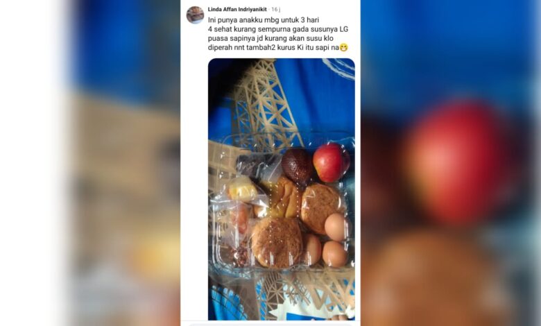 Nettizen, Linda Affan Indriyanikit mengatakan selain tak ada susu, pemberian MBG juga diberikan secara rapel 3 (Tiga) hari.